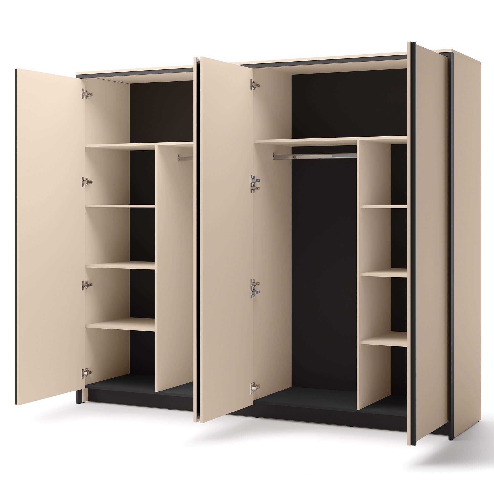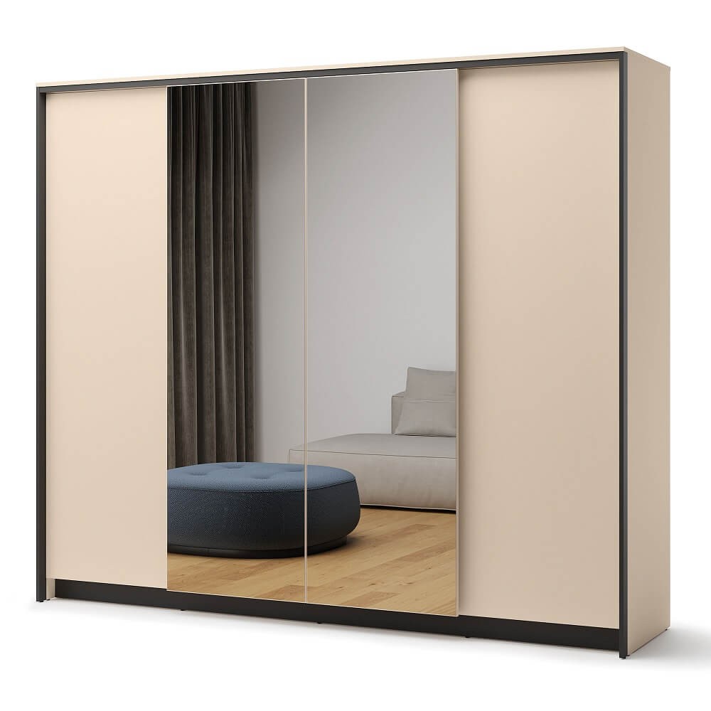 ENNA EN-06 4D keturių durų spinta | 250 cm | Veidrodis, LED apšvietimas | Smėlio, juodos spalvos