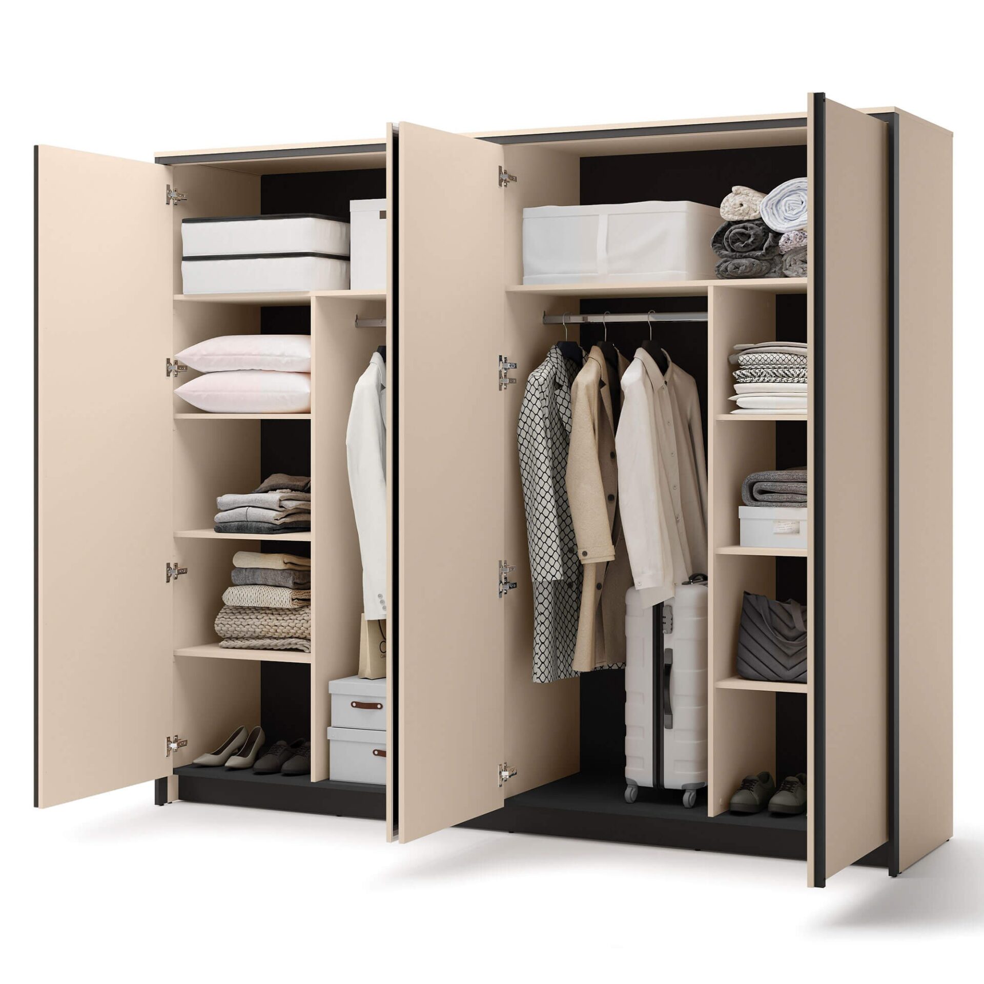 Dizainas: moderni keturių durų spinta miegamajam arba svetainei