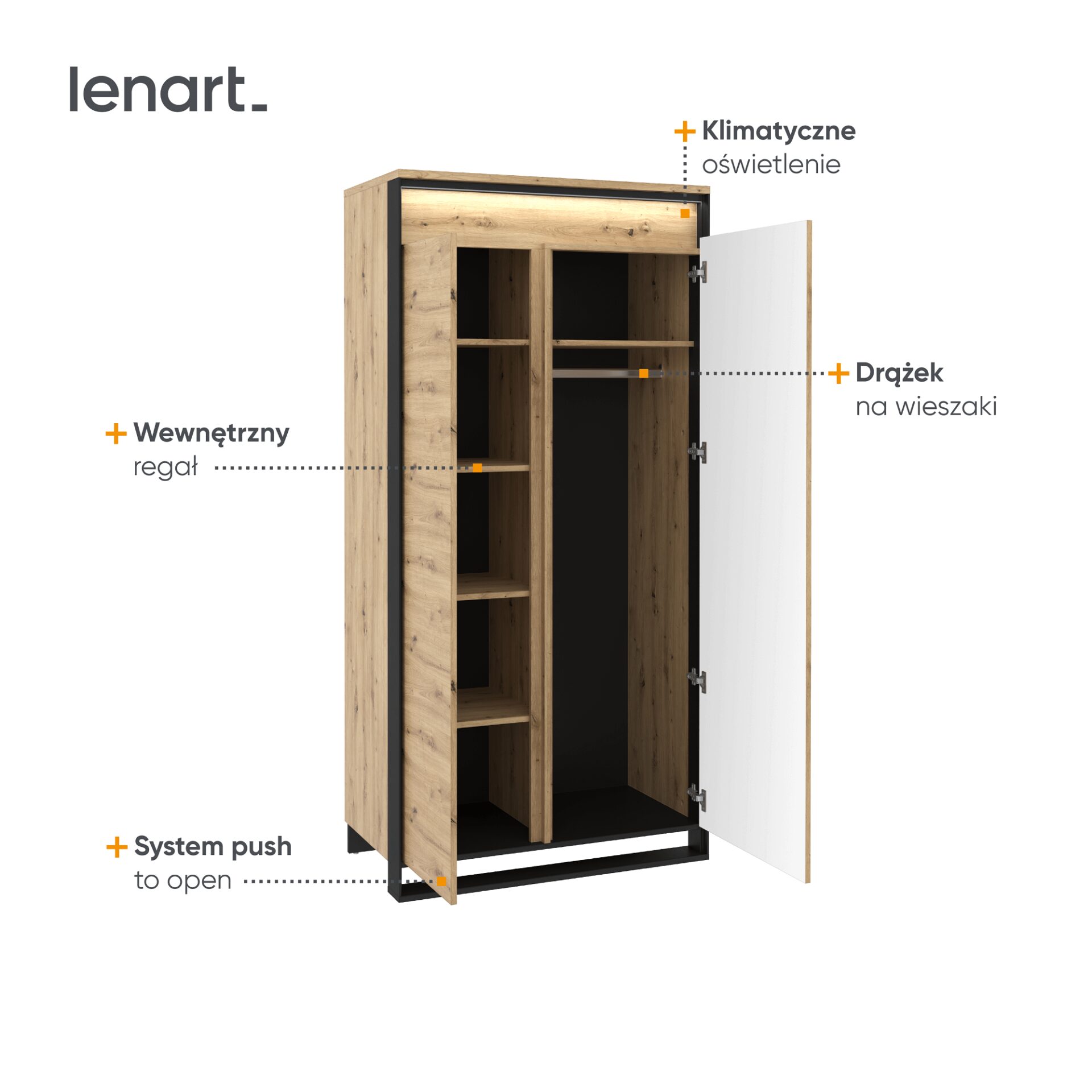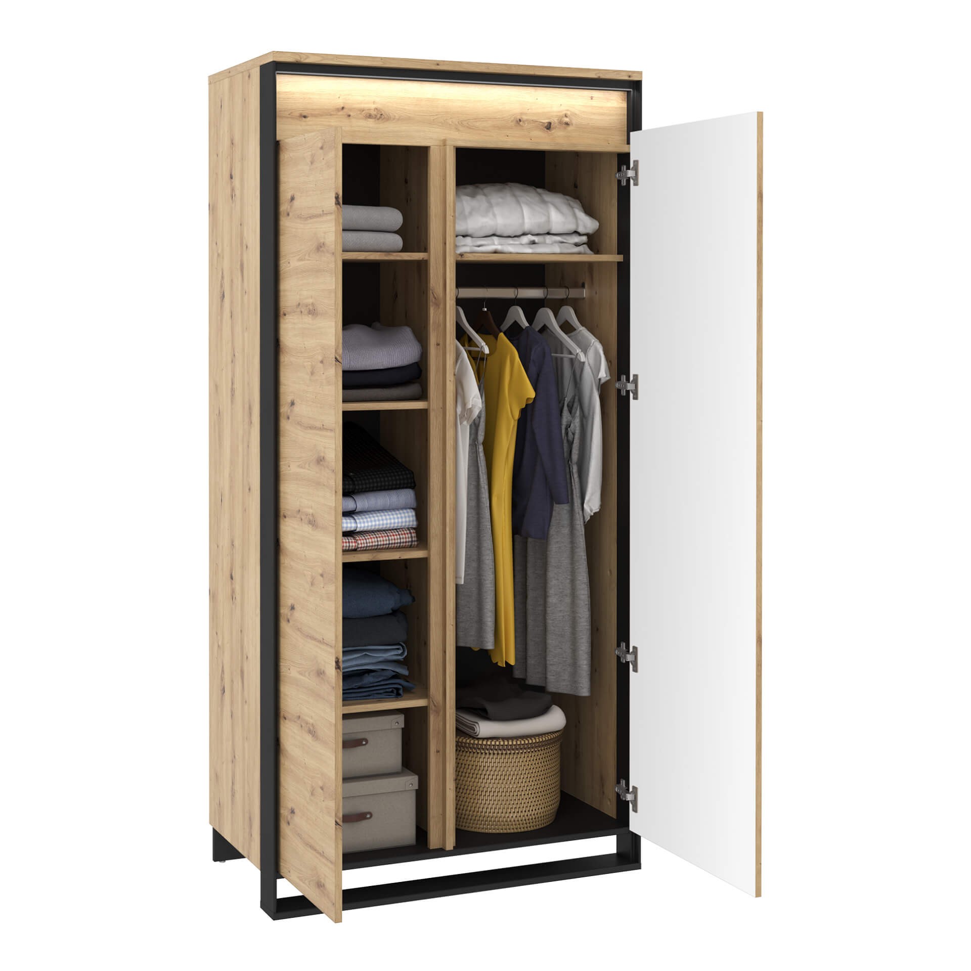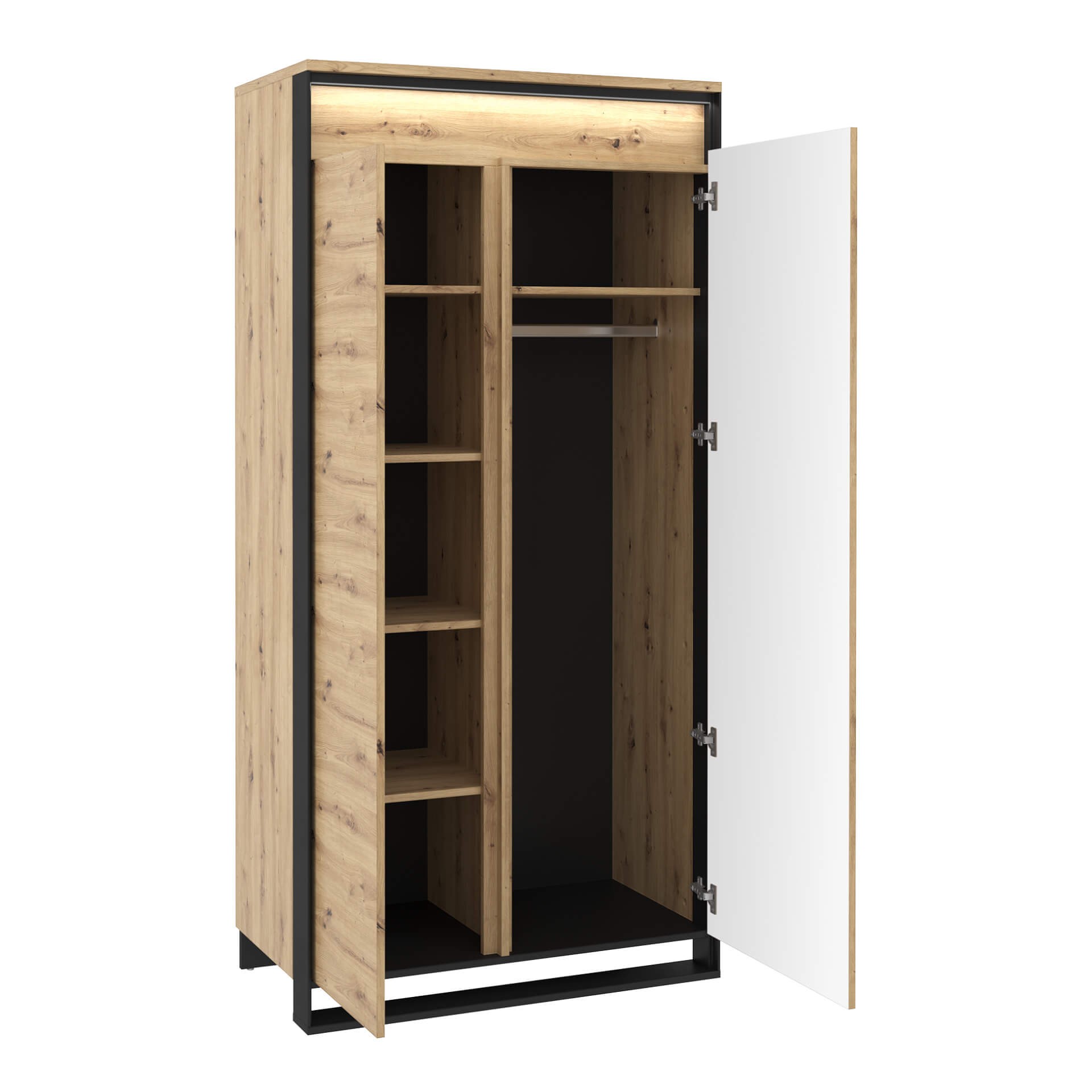 Modelis: QA-01 Spalva: artisan ąžuolas / juoda Matmenys: Plotis: 95 cm Aukštis: 195 cm Gylis: 50 cm Pagrindinė informacija: korpuso pavadinimas: QA-01 kolekcijos pavadinimas: QUANT korpuso indeksas: QA1DAC spalvos: artisan ąžuolas / juoda baldų tipas: spinta korpuso charakteristikos: 2D plotis: 95 cm aukštis: 195 cm gylis: 50 cm korpuso svoris: 81 kg surinkimas: reikalingas surinkimas kolekcijos stilius: modernus interjero tipas 1: svetainė įranga: 1x karnizas, 5x lentyna durelių skaičius: 2 furnitūra: vyris: standartinis paslėptas koja / koja: slystantis su vinimis apšvietimas: yra apšvietimo tipas: LED juostelė Medžiaga: korpusas: laminuota medžio drožlių plokštė: 16 mm; 22 mm korpuso krašto apdaila: A 0,45 mm korpuso spalva: juoda / artisan ąžuolas viršus: laminuota medžio drožlių plokštė; 22 mm viršutinės krašto apdaila: A 0,45 mm klijuotų viršutinių kraštų skaičius: 4 viršutinės spalvos: artisan ąžuolas galinė sienelė: HDF plokštė; 3 mm storio matomos galinės sienelės dalies apdaila: laminatas; nematomos galinės sienelės dalies apdaila: neapdorota; galinės sienos tvirtinimas: „Nuta“; galinės sienelės spalva: juoda; lentyna: laminuota medžio drožlių plokštė; 16 mm; lentynos krašto apdaila: A; 0,45 mm; klijuotų lentynų kraštų skaičius: 1; leistina lentynos apkrova: 5 kg; lentynos spalva: meniškas ąžuolas; lentynų skaičius: 3; priekis: laminuota medžio drožlių plokštė; 16 mm; priekinės krašto apdaila: S; 1,70 mm; priekinės spalvos: meniškas ąžuolas. Svarbu: Spinta gaminama pagal individualų kliento užsakymą. Užsakymo atšaukti negalima praėjus 48 valandoms nuo pateikimo. Prašome apsipirkti atidžiai.