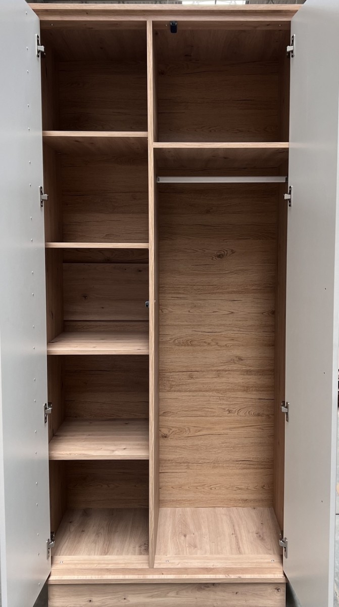 Keks K1 kašmyro spinta – su lentynomis ir pakaba spintoms už fasadų.