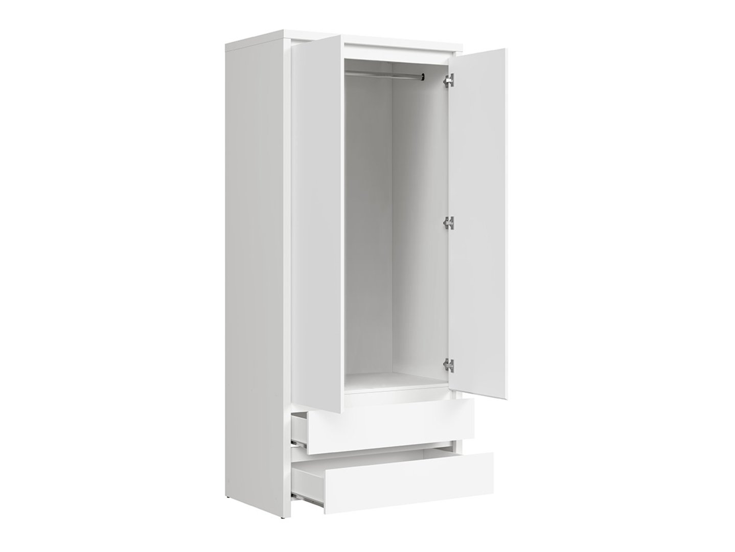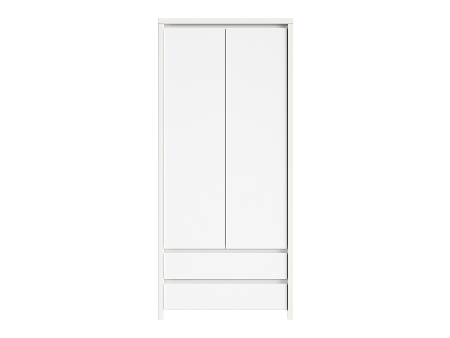 Dviejų durų spinta su dviem stalčiais KASPIAN 90 cm balta/matinė balta