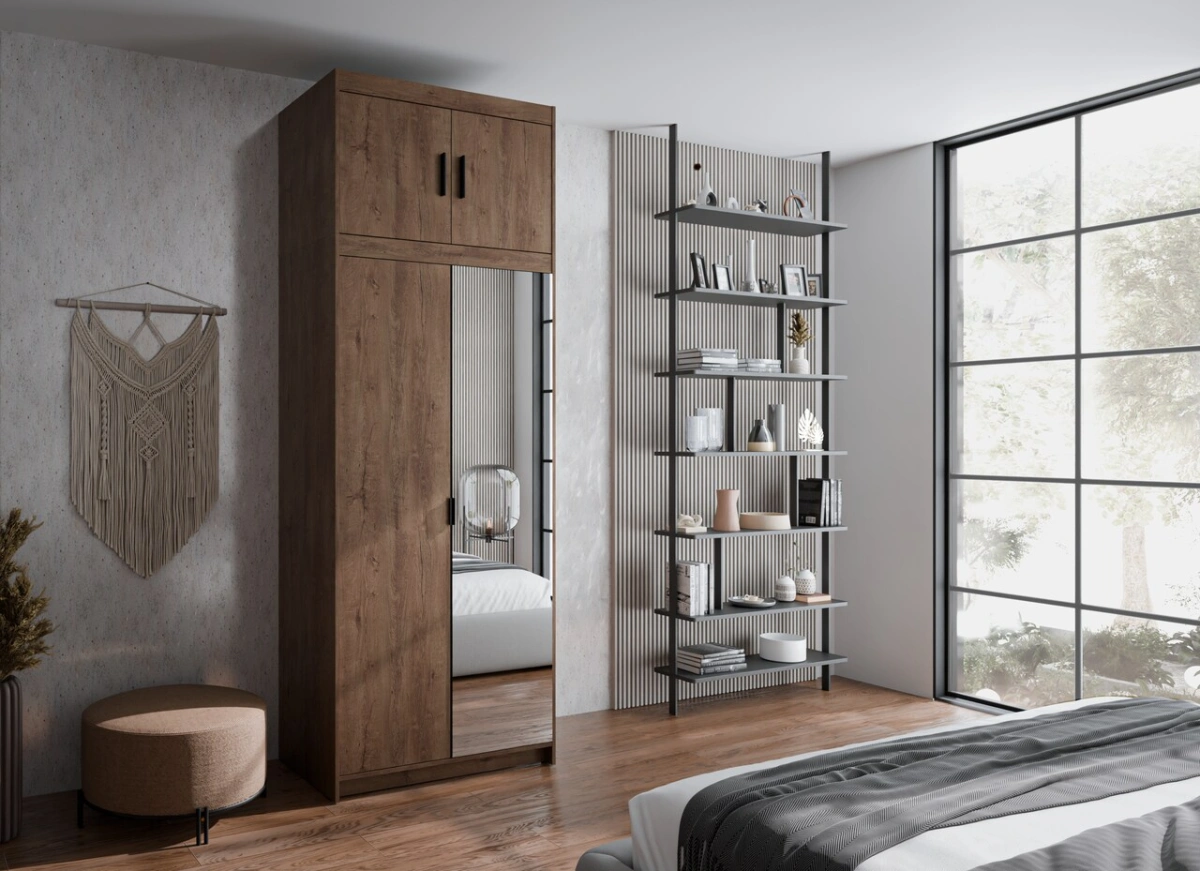 Elena 2D spinta, ąžuolo spalvos, Lefkas, su veidrodžiu