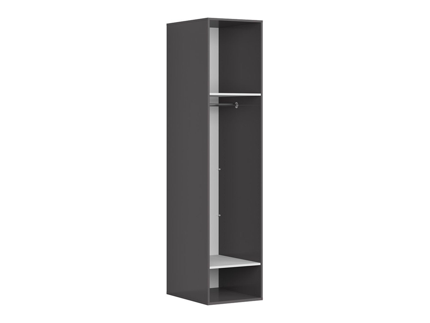 „Flex“ spinta – minimalistinis dizainas, maksimalus funkcionalumas. Maža erdvė nebūtinai turi reikšti tvarkos ir stiliaus aukojimą. „Flex“ spinta – tai sprendimas tiems, kurie vertina minimalistinį dizainą neprarandant maksimalaus funkcionalumo. Ši siaura spinta su varstomu priekiu puikiai veikia kaip atskiras baldas arba kaip papildomas elementas erdvei organizuoti. Universalus dizainas leidžia ją pastatyti miegamajame, svetainėje, darbo kambaryje ar prieškambaryje, suteikiant kiekvienai erdvei elegancijos. Matmenys (50 x 240 x 66 cm) garantuoja lengvą pritaikymą prie turimos erdvės. Minimalistinė, klasikinė spintos forma spinduliuoja paprastumu. Elegantiškas grafito spalvos korpusas ir fasadai puikiai papildo modernų dekorą ir tuo pačiu gražiai dera su kambaryje esančia mediena. Įrėminti fasadai su juoda, smailia rankena traukia dėmesį ir suteikia charakterio. Pilkas lininis vidus suteikia harmonijos. Šios spintos funkcionalumas slypi joje. Trys lentynos leidžia laikyti sulankstytus drabužius, o pakaba puikiai tinka suknelėms, marškiniams ar striukėms. Koloninė spinta – tai sprendimas, leidžiantis optimaliai išnaudoti erdvę, kartu užtikrinant tvarką ir stilių.