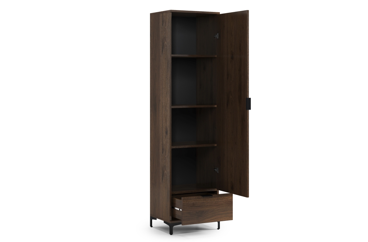 PLOTIS 50 cm, GYLIS 40 cm, AUKŠTIS 195 cm, MEDŽIAGOS Medžio drožlių plokštė + milteliniu būdu dažytas plienas, PAVIRŠIUS Matinis, STILIUS Loft, SVORIS SU PAKUOTE 48,7 kg, KITA Gaminys skirtas savarankiškam surinkimui su pateiktomis instrukcijomis