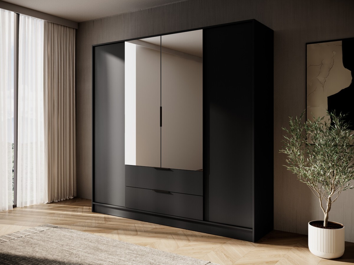 Būkite pirmas aprašęs “4 durų palėpės tipo spinta su stalčiais ir veidrodžiais Kelly 4DL”