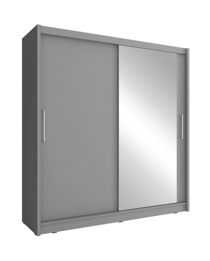 Maja 1 spinta, dvidurė, 180 cm, stumdoma, lentynos, pakaba, veidrodis, grafito spalvos