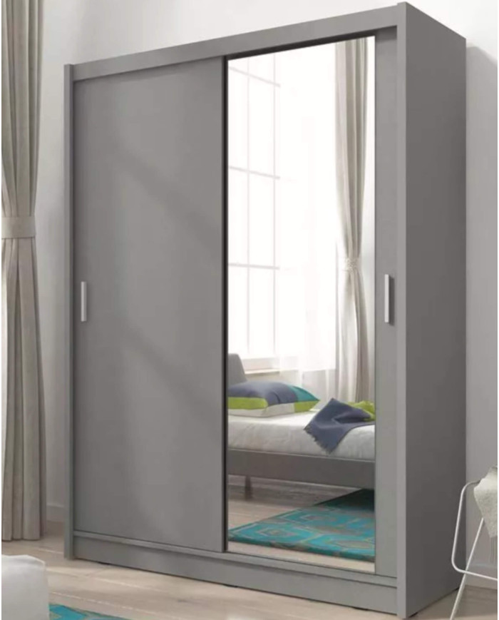Maja 1 spinta, dvidurė, 200 cm, stumdomos, lentynos, pakaba, veidrodis, grafito spalvos
