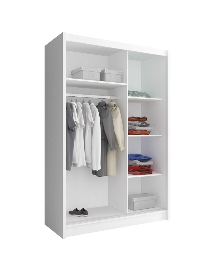 Maja 2 spinta, dvidurė, 130 cm, stumdomos, lentynos, pakaba, veidrodžiai, grafito spalvos