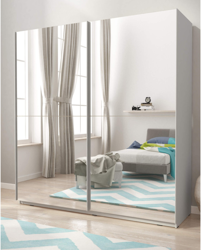 Mika 3 spinta, dvidurė, 150 cm, stumdoma, lentynos, pakabos karnizas, veidrodžiai, balta