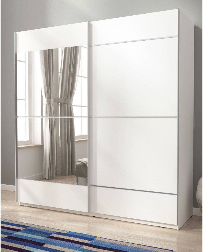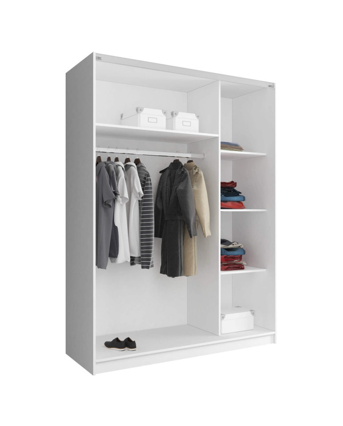 Mika 4 spinta, dvidurė, 150 cm, stumdoma, lentynos, pakaba, veidrodis, balta