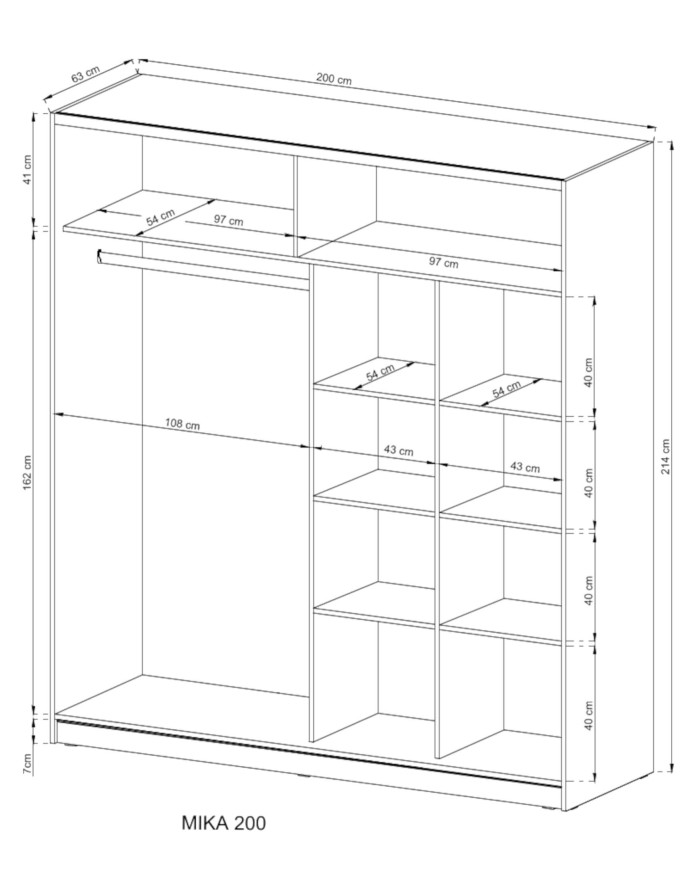 Didelė ir moderni „Mika 4“ spinta žavi patraukliu dizainu, kurį pabrėžia pilkos dekoratyvinės juostelės. Komplekte ant vienų iš durelių yra horizontalūs veidrodžiai, kurie vizualiai padidina erdvę. Šis baldas puikiai tinka šiuolaikiniams miegamiesiems, svetainėms ir koridoriams. Komplekto viduje yra lentynos drabužiams ir didelėms dėžėms, taip pat pakabinimo skersinis ilgiems ir trumpiems drabužiams. Spinta pagaminta iš laminuotos baldų plokštės su „Sonoma Oak“ apdaila, kuri pasižymi padidintu atsparumu įbrėžimams. Baldai pristatomi supakuoti ir juos reikia surinkti patiems, kartu su furnitūra ir aiškiomis instrukcijomis.