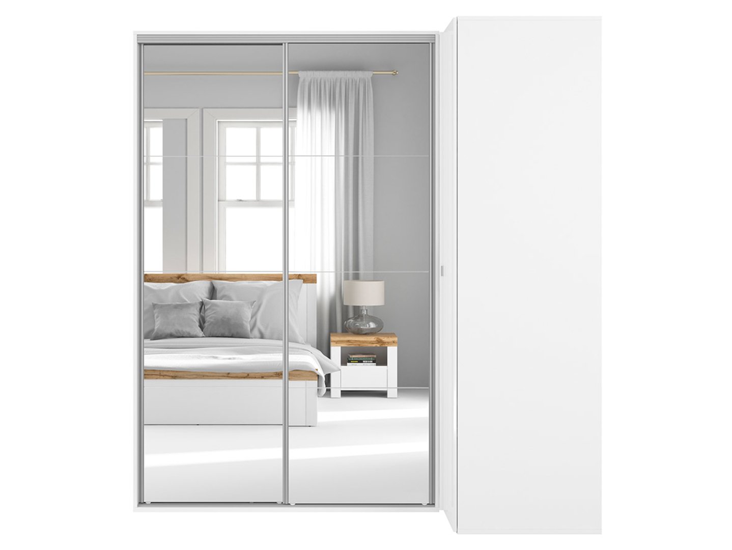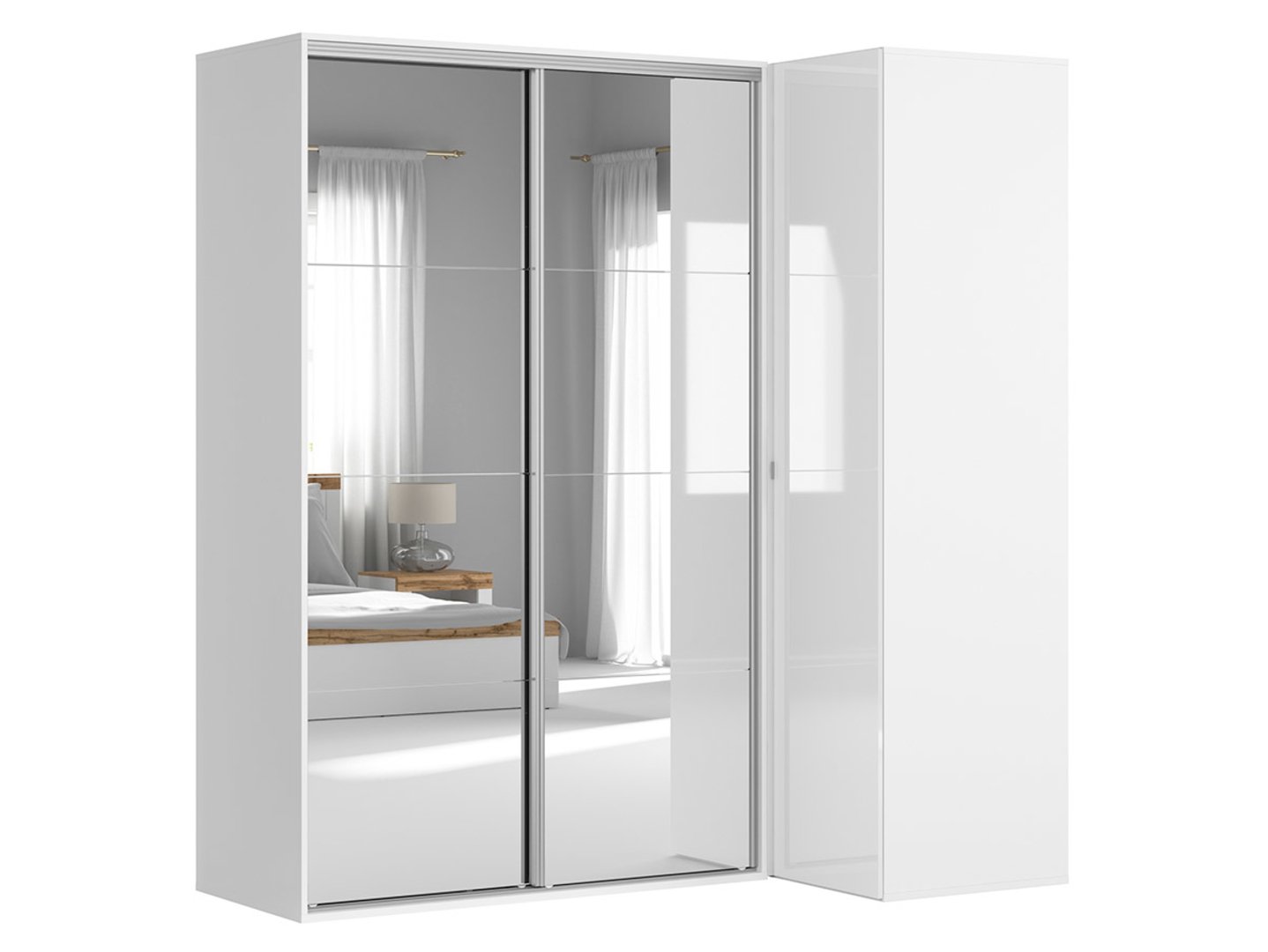 Trijų durų kampinė spinta su stumdomais veidrodžiais FLEX 220×116 cm balta/pilka
