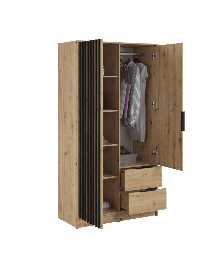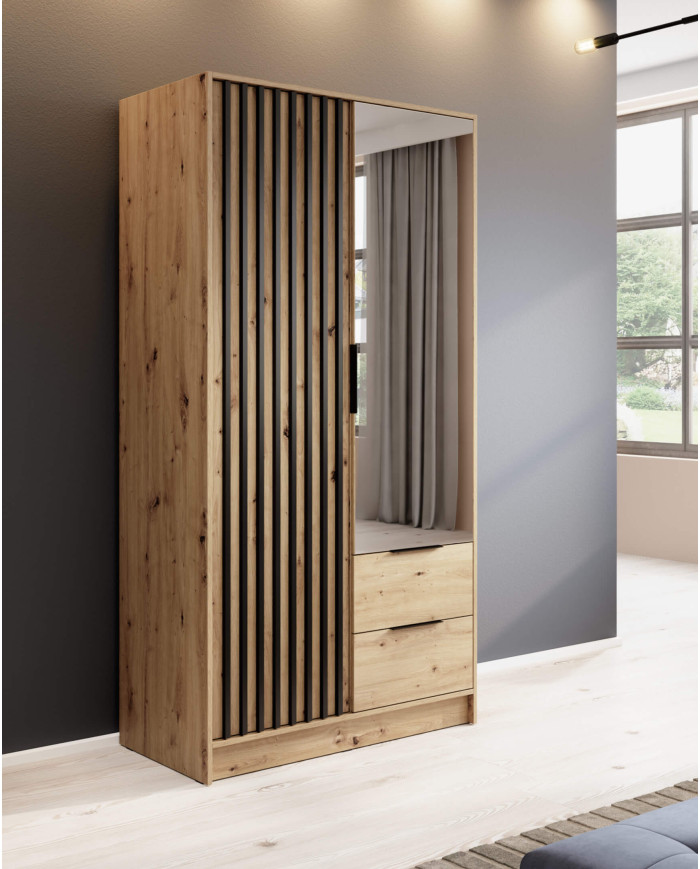Nelly 100 spinta, dvidurė, lentynos, pakaba, stalčiai, veidrodis, „Artisan Oak“ / juoda