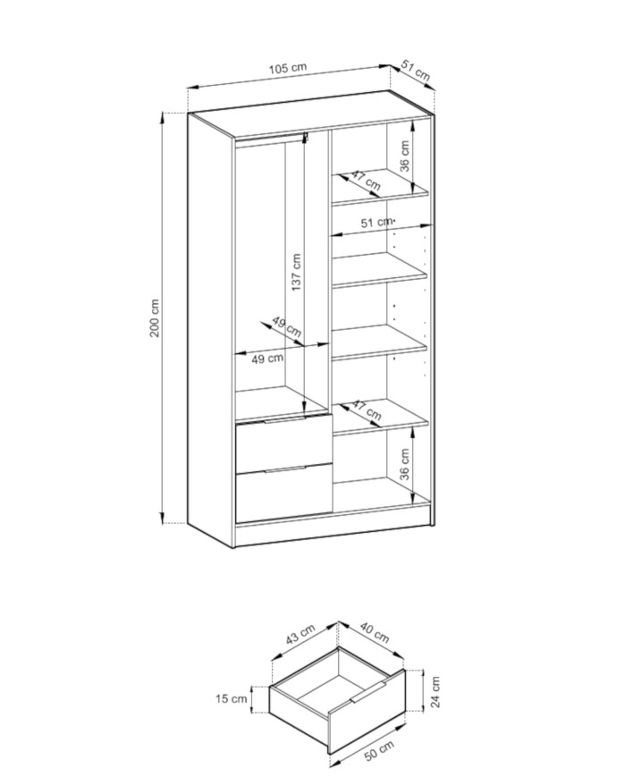 „Nelly 100“ spinta su dekoratyvinėmis skersinėmis, veidrodžiu ir varstomais fasadais, „Artisan Oak“ / juodos spalvos, turi pakabos kabinimui, daugybę lentynų drabužiams ir dėžėms bei erdvius stalčius apatiniams ir smulkiems daiktams. Baldai pagaminti iš patvarios, įbrėžimams atsparios laminuotos plokštės. Komplektas pristatomas išardytas, su instrukcijomis ir furnitūra. Taip pat galimi grafito / „Artisan Oak“ ir pilkos / „Artisan Oak“ spalvų variantai. Spintą galima išplėsti papildomu prailginimo elementu, kurio įsigijimo parinktys pateiktos „Product Creator“ svetainėje.