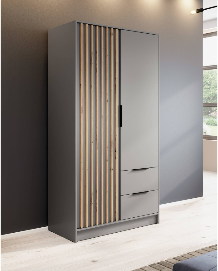 Nelly 100 spinta, dvidurė, lentynos, pakabinimo karnizas, stalčiai, pilka/artisan ąžuolas