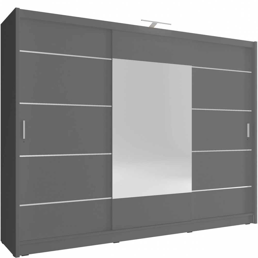 Spinta WIKI 250 ALU pagaminta iš aukštos kokybės 16 mm storio laminuotos plokštės su ABS faneruotais kraštais. Pagrindas pagamintas iš MDF plokštės. Spinta turi pakabą drabužiams ir daugybę lentynų – vidinis išdėstymas parodytas nuotraukoje. Spinta puikiai tinka drabužiams laikyti. Į komplektą įeina LED apšvietimas.