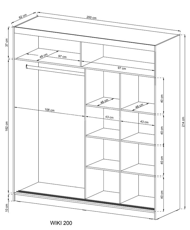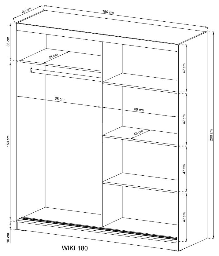 „Wiki II“ spinta pagaminta iš laminuotos plokštės, su MDF šoninėmis panelėmis ir ABS apdaila korpusu. „Wiki“ spinta yra dviejų dydžių: