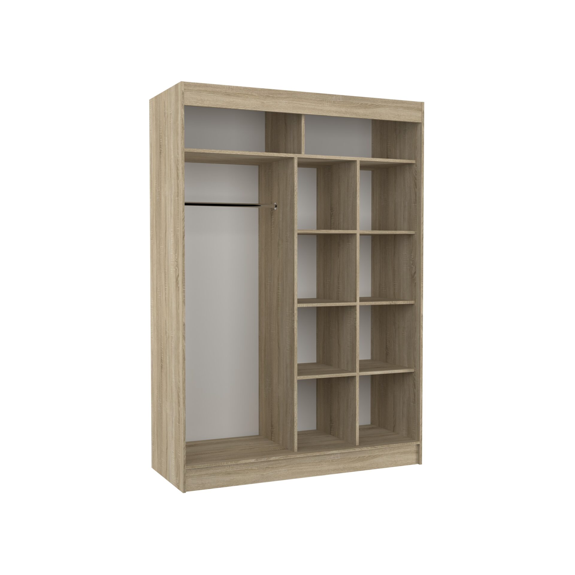 Stumdoma spinta BATIA – puikus būdas sutvarkyti erdvę. Joje yra erdvios lentynos ir pakaba suknelėms, kostiumėliams, viršutiniams drabužiams ir marškiniams. Dekoratyviniai „lacobel“ akcentai priekyje suteikia baldui unikalų stilių. Kadangi spinta yra stumdoma, nereikia kurti papildomos erdvės durims atidaryti, todėl tai puikus sprendimas mažam kambariui ar siauram koridoriui.