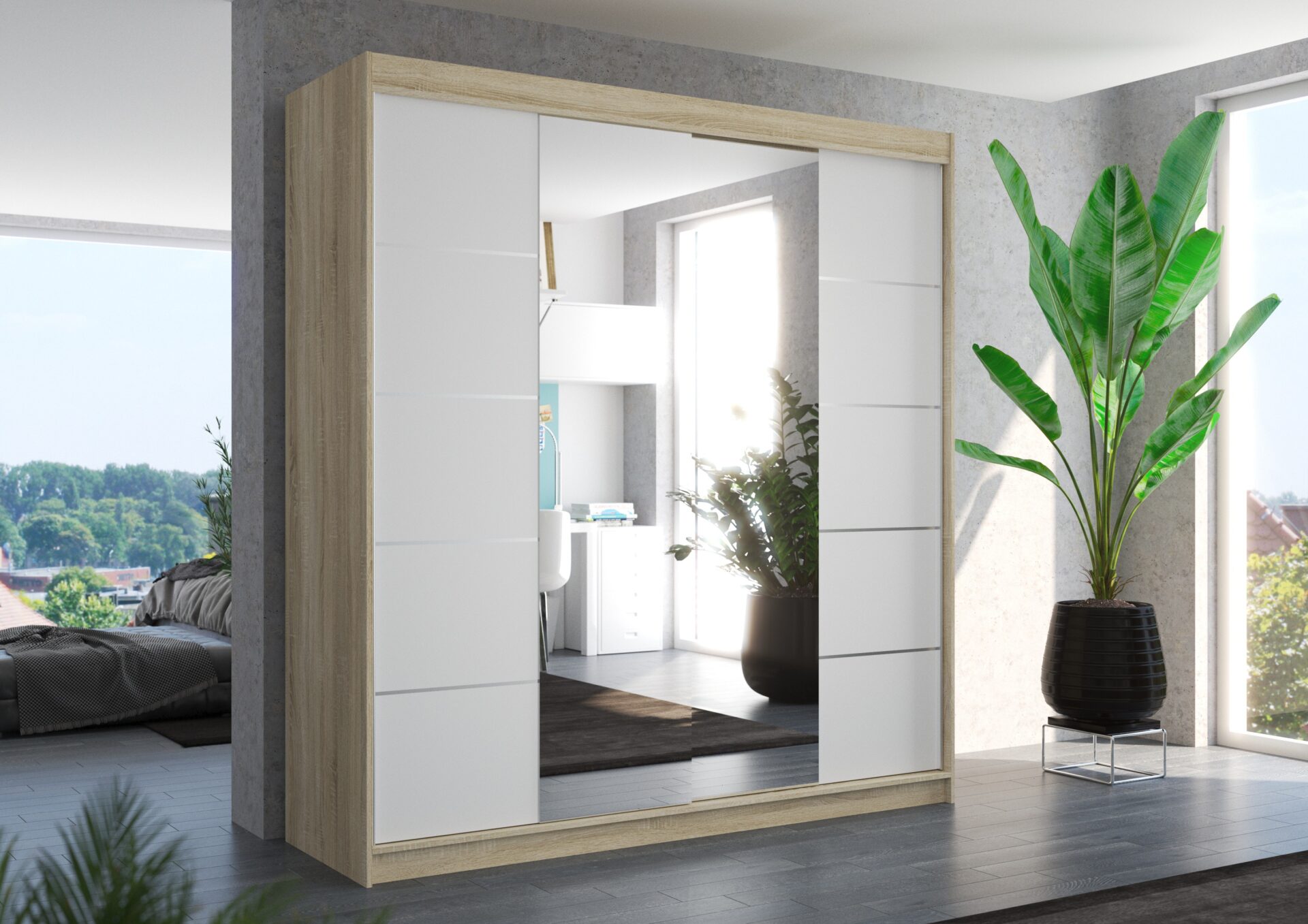 Stumdoma spinta su veidrodžiu DALMATIA 200 Sonoma/Balta ADRK