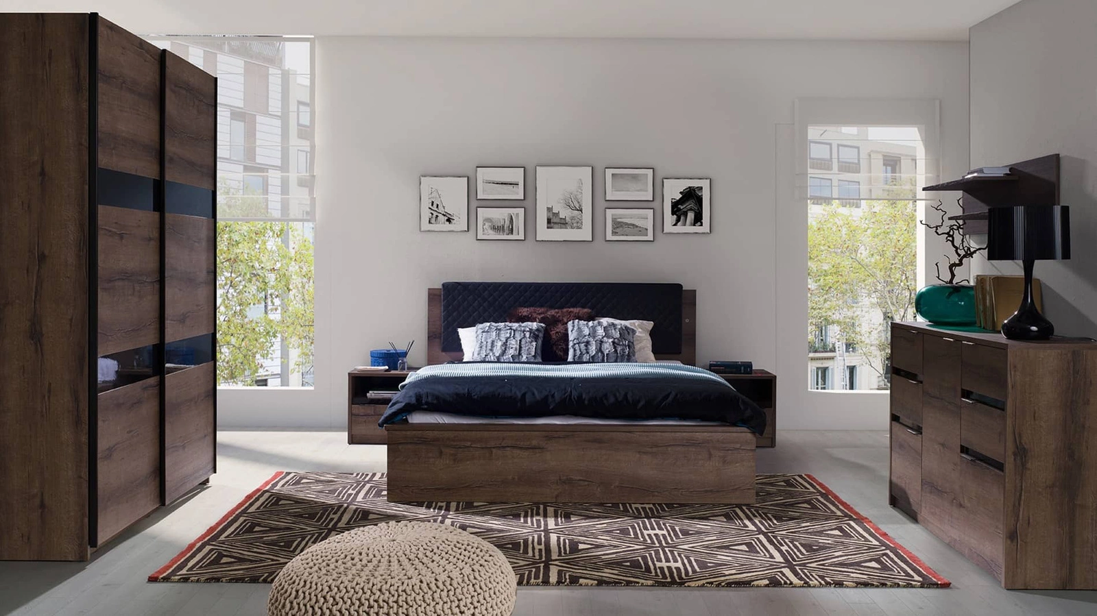 Denver stumdoma spinta su veidrodžiu 150 cm, Monastery ąžuolas / juodas blizgus, moderni spinta, puikiai tinkanti bet kokiam interjero stiliui