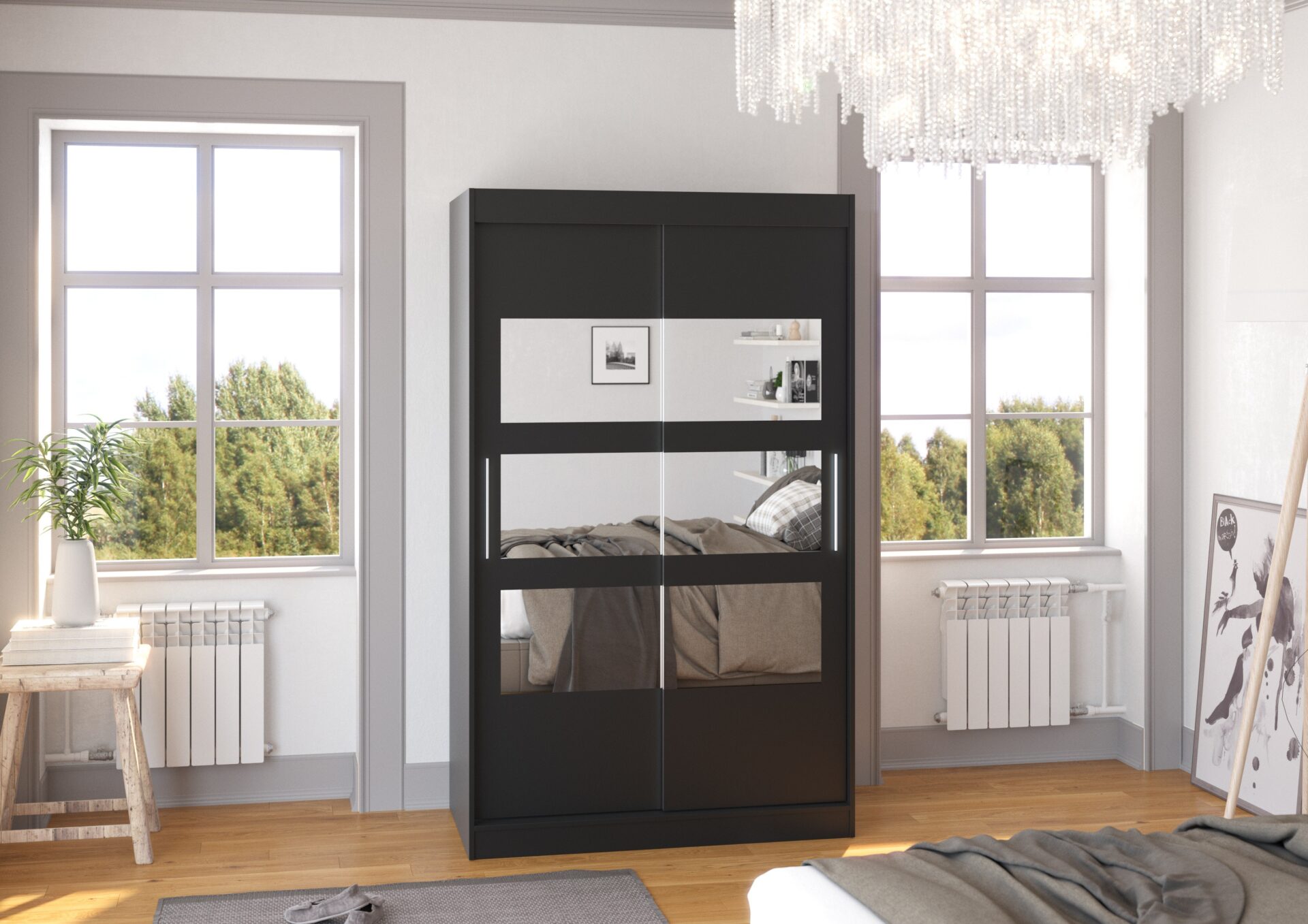 Stumdoma spinta su veidrodžiu KOLORADO – puikus būdas sutvarkyti erdvę. Joje yra erdvios lentynos ir pakaba suknelėms, kostiumėliams, viršutiniams drabužiams ir marškiniams kabinti. Priekyje pritvirtinti horizontalūs veidrodžiai vizualiai padidina erdvę ir suteikia stiliaus. Kadangi spinta yra stumdoma, nereikia kurti papildomos erdvės durims atidaryti, todėl tai puikus sprendimas mažam kambariui ar siauram koridoriui.