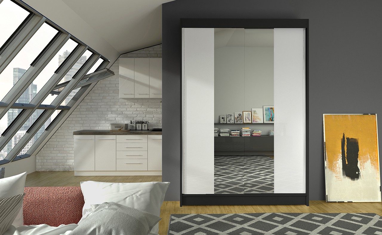 Būkite pirmas aprašęs “Stumdoma spinta su veidrodžiu MARVIN 120 juoda/balta ADRK”