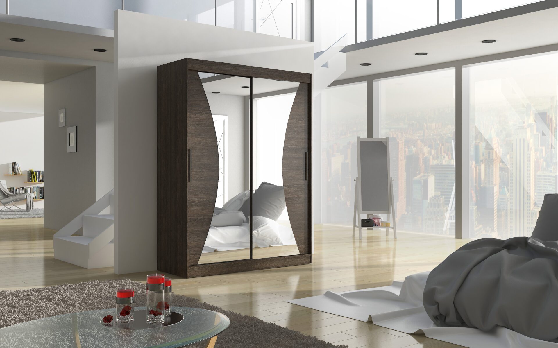 Stumdoma spinta su veidrodžiu MAX – puikus būdas sutvarkyti erdvę. Joje yra erdvios lentynos ir pakaba suknelėms, kostiumėliams, viršutiniams drabužiams ir marškiniams. Priekyje pritvirtintas veidrodis vizualiai padidina erdvę. Kadangi spinta yra stumdoma, nereikia kurti papildomos erdvės durims atidaryti, todėl tai puikus sprendimas mažam kambariui ar siauram koridoriui.