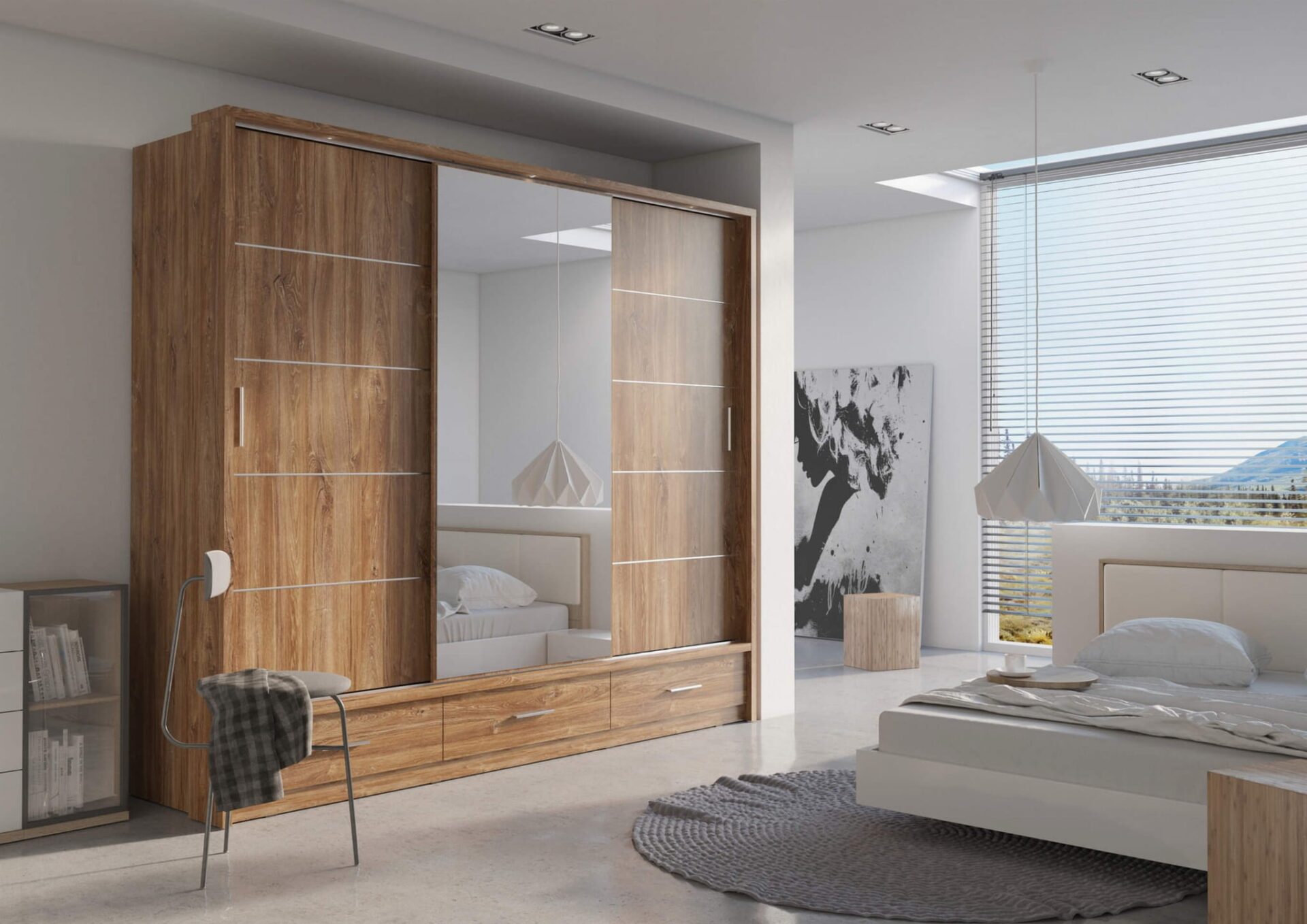 Modelis: AR-01P Spalva: Stirling ąžuolas Matmenys: Plotis: 250 cm Aukštis: 215 cm Gylis: 63 cm Pagrindinė informacija: korpuso pavadinimas: AR-01 kolekcijos pavadinimas: ARTI korpuso indeksas: AR1DYP spalvos: stirling ąžuolas baldų tipas: spinta korpuso charakteristikos: 3D3S plotis: 250 cm aukštis: 215 cm gylis: 63 cm korpuso svoris: 244,0 kg surinkimas: reikalingas surinkimas kolekcijos stilius: modernus interjero tipas 1: spinta interjero tipas 2: miegamasis įranga: 2x bėgeliai, 6x lentynos, 1x apšvietimas stalčių skaičius: 3 durelių skaičius: 3 furnitūra: rankena: plastikinė stalčiaus bėgelė: ritininė bėgelė spintos priekinė bėgelė: aliuminė; apatinis ir viršutinis surinkimas koja: slystantis su vinimi apšvietimas: yra apšvietimo tipas: LED energijos klasė: A++