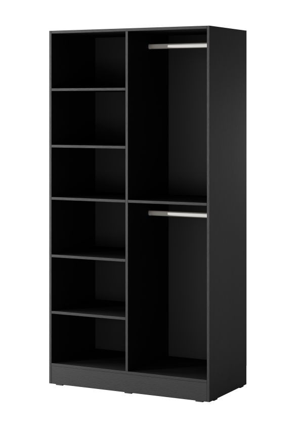 Spinta turi du fasadus: vieną su dviem drabužių kabyklomis, o kitą su lentynomis.