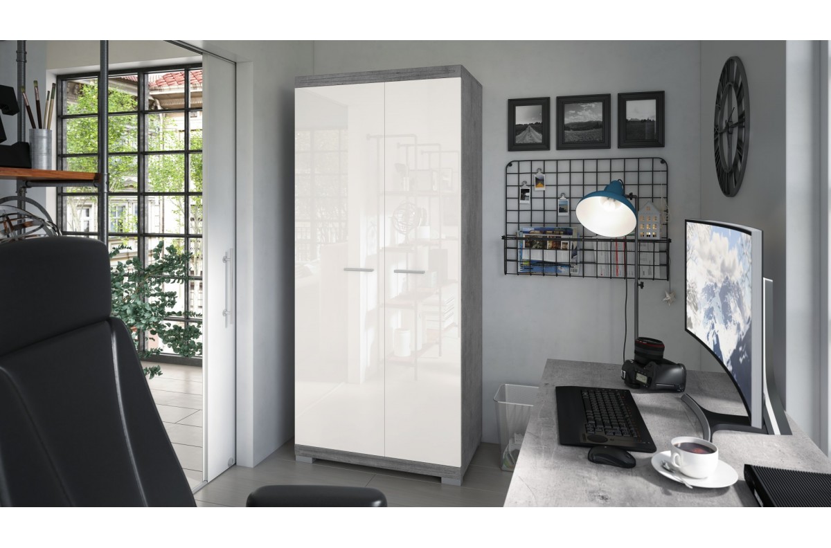 Būkite pirmas aprašęs “SIMPLE SZD2 Spinta „Millenium Concrete“/Balta blizgi – Persirengimo kambarys su lentyna ir drabužių pakaba”