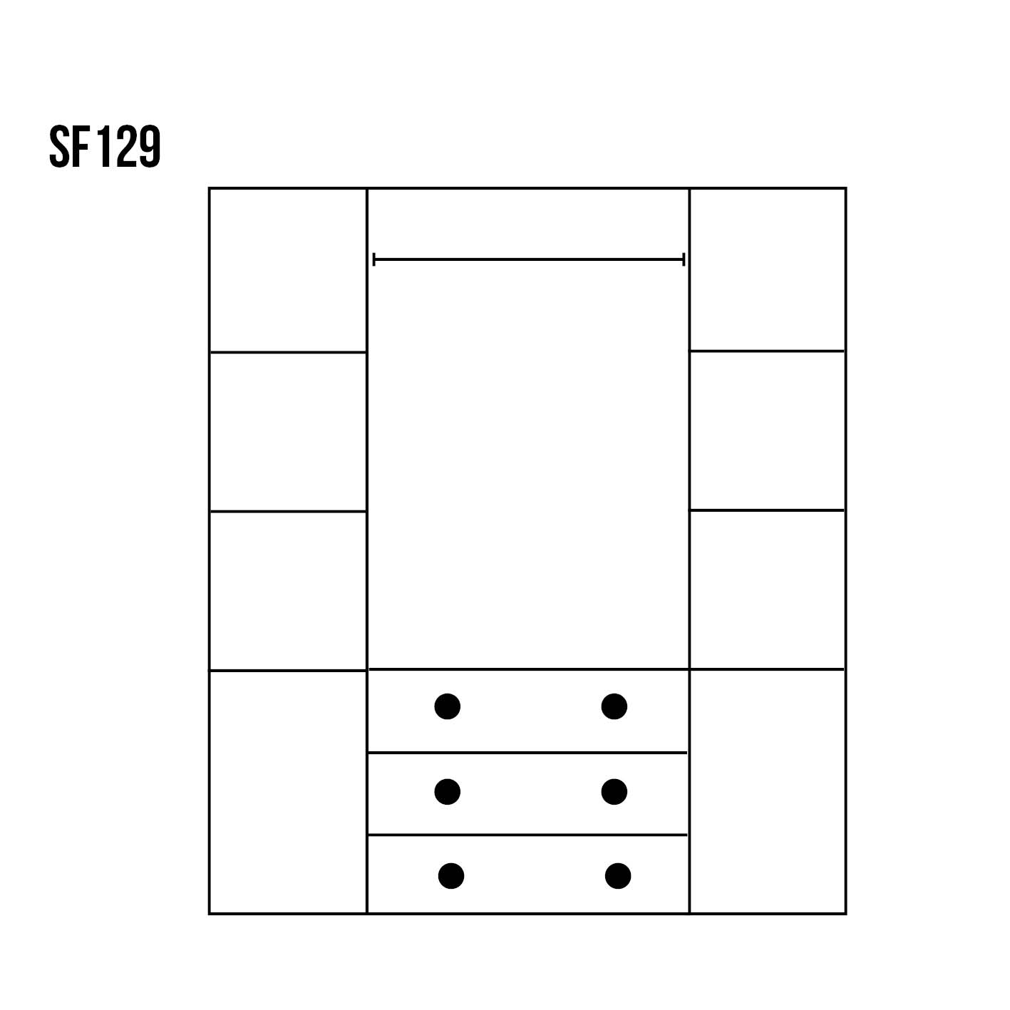 SF129 – tai pušinė spinta, kurioje tilps visa jūsų spinta. Erdvi ir moderni, ji bus ir dekoratyvi, ir funkcionali. Spinta padalinta į dvi dalis. Jos šonuose yra simetriškai išdėstytos lentynos, o vidurinėje dalyje – pakaba daiktams kabinti. Trys erdvūs stalčiai apatinėje dalyje puikiai tinka rečiau naudojamiems daiktams laikyti.