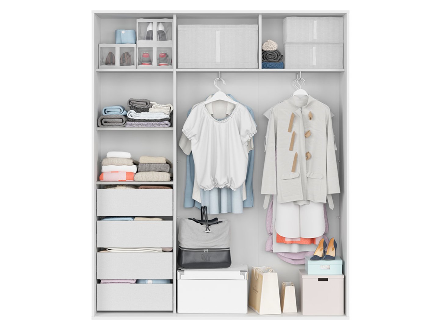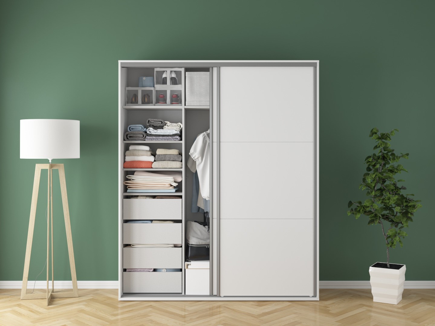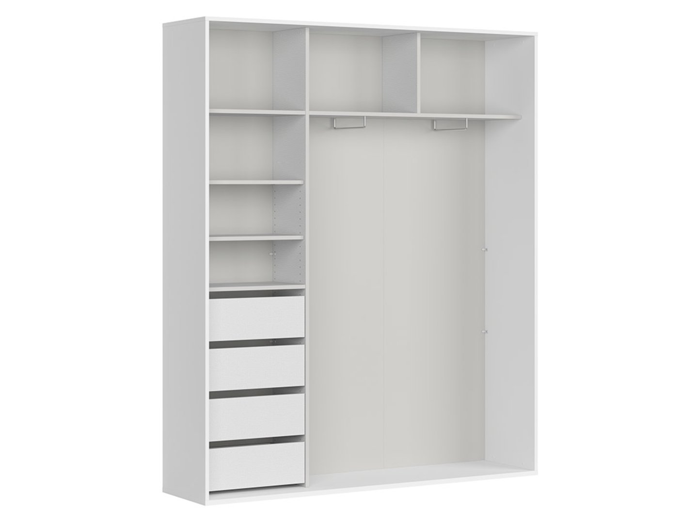 „Flex“ spinta – modernus požiūris į erdvės harmoniją. Jei ieškote erdvios ir stilingos spintos, kurioje tilptų visi jūsų reikalingi daiktai, „Flex“ spinta yra puikus pasirinkimas. Minimalistinis baltas dizainas puikiai tinka moderniam ir skandinaviškam interjerui. Subtilūs grioveliai ant stumdomų durų suteikia elegancijos. „Flex“ spinta yra ne tik praktiška vieta drabužiams laikyti, bet ir harmoningas interjero dizaino elementas. Ji puikiai tinka miegamajam, suteikia lengvumo ir tvarkos. Ją galite naudoti dviejų žmonių drabužiams laikyti, nes joje yra keturi stalčiai, penkios lentynos ir du pakabos bėgeliai. Stalčiai su rutuliniais guoliais, kurie leidžia visiškai ištraukti, ir švelnaus uždarymo funkcija užtikrina didelį naudojimo komfortą. Pilkas lininis spintos vidus suteikia elegancijos. Tvirta konstrukcija, įskaitant 18 mm ir 22 mm storio viršutinius ir priekinius paviršius, pagamintus iš patvarios medžio drožlių plokštės, padengtos apdailos folija, garantuoja ne tik estetinį patrauklumą, bet ir ilgaamžiškumą. „Flex“ spinta yra sprendimas tiems, kurie vertina ir funkcionalumą, ir dizainą. Pasirinkite jau paruoštą sprendimą arba naudokite konfigūratorių, kad pritaikytumėte garderobą pagal savo individualius poreikius.