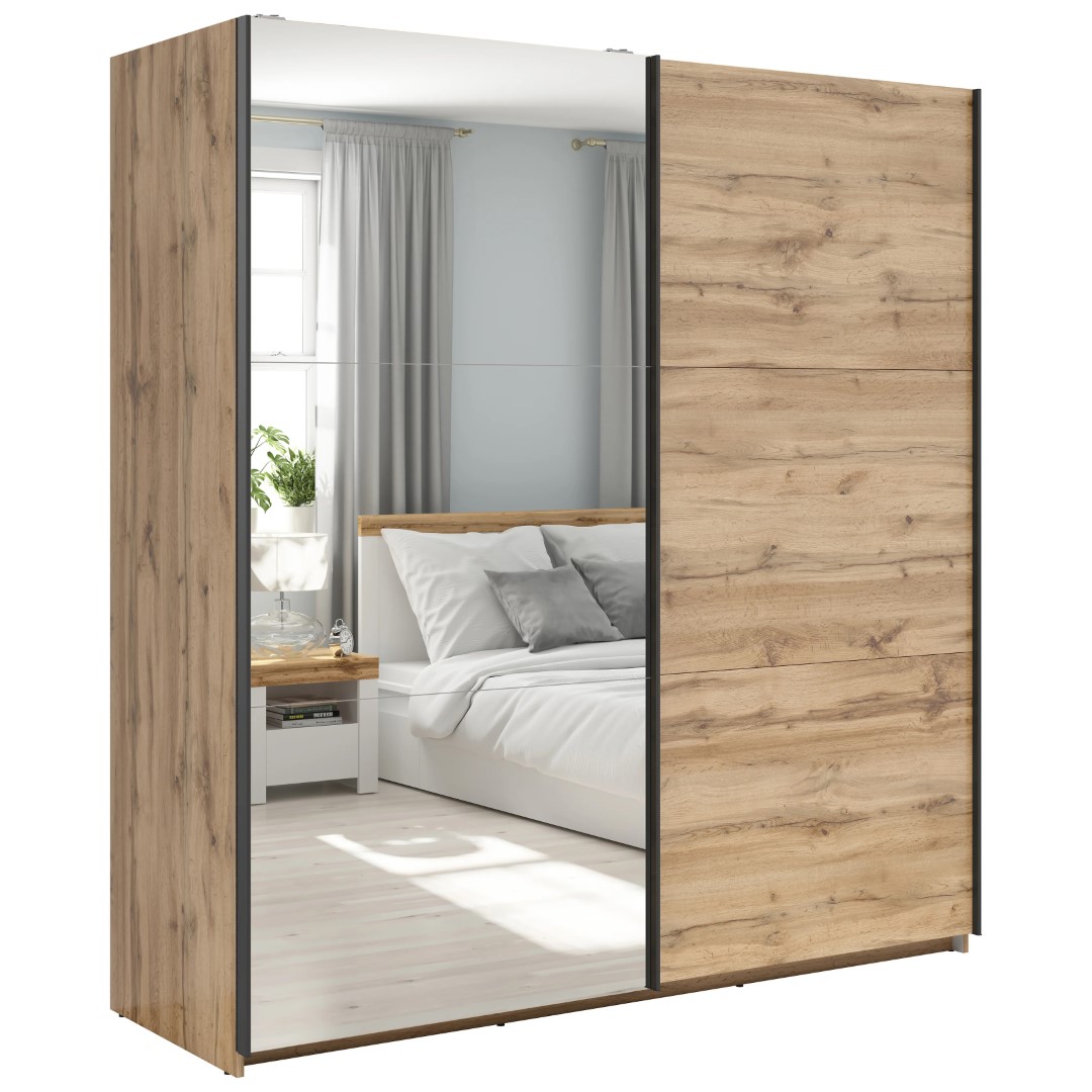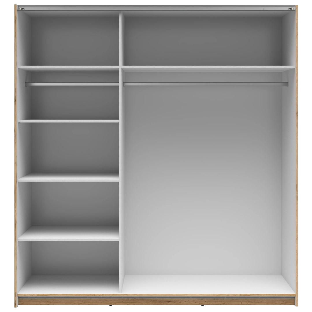 183 Tetrix stumdoma spinta – tobula vieta daiktams susidėti. Spinta yra būtinas kiekvienų namų baldas. Moderni 183 Tetrix stumdoma spinta – tai sprendimas, kuris ne tik padės susitvarkyti drabužius ir tekstilę, bet ir suteiks jūsų erdvei elegancijos bei funkcionalumo. Štai pagrindinės šio unikalaus baldo savybės: 2 stumdomos durys, vienos iš jų su veidrodžiu: „Tetrix“ stumdomos durys yra ne tik praktiškas sprendimas norint sutaupyti vietos kambaryje, bet ir estetiškai patrauklus. Vienas iš priekių yra padengtas veidrodžiu, kuris ne tik suteikia elegancijos, bet ir leidžia lengviau patikrinti savo išvaizdą rengiantis. 2 pakabos: Du pakabos bėgeliai suteikia patogią vietą drabužiams pakabinti. Galite susisteminti savo aprangą pagal tipą ar sezoną, todėl lengviau išsirinkti tinkamą aprangą kiekvieną dieną. 2 gilios viršutinės lentynos: Viršutinės lentynos idealiai tinka laikyti daiktus, kurių nebūtinai reikia kabinti ant pakabų. Čia galite sudėti tokius daiktus kaip skalbinių krepšiai, rankinės ar kiti aksesuarai. Trys papildomos lentynos yra standartinės: Tai dar vienas „Tetrix“ spintos privalumas. Šios lentynos suteikia papildomos vietos daiktams susidėti ir, svarbiausia, jas galima visiškai reguliuoti. Galite juos pritaikyti pagal savo poreikius ir ištraukti, kad atsirastų daugiau vietos drabužiams pakabinti. Tai praktiškas sprendimas, leidžiantis lanksčiai naudoti spintos vidų. Pilka „Tetrix“ spintos vidaus spalva suteikia jai elegantišką ir modernų vaizdą. Ji taip pat praktiška, nes pilka spalva leidžia geriau matyti spintos turinį net ir prastai apšviestomis sąlygomis. Jei pilka nėra jūsų mėgstamiausia spalva arba norite ryškesnio sprendimo, galite rinktis kitos spalvos „Tetrix“ spintą. Tai puikus pasirinkimas, derantis prie likusio jūsų interjero. „Tetrix“ kolekcijoje taip pat siūlomi kiti baldai, kuriuos galima derinti su šia spinta, kad jūsų miegamajame ar kitoje erdvėje būtų sukurta darni išvaizda. Tai leidžia mėgautis gražiu ir funkcionaliu išdėstymu, puikiai atitinkančiu jūsų poreikius. Investuoti į baldus, kurie ne tik atrodo stilingai, bet ir yra praktiški bei funkcionalūs, visada yra geras pasirinkimas. 183 „Tetrix“ stumdoma spinta atitinka šiuos kriterijus, siūlydama daug vietos daiktams susidėti ir nuostabų modernų dizainą. Paverskite savo namus vieta, kur kiekvienas daiktas turi savo tobulą vietą.