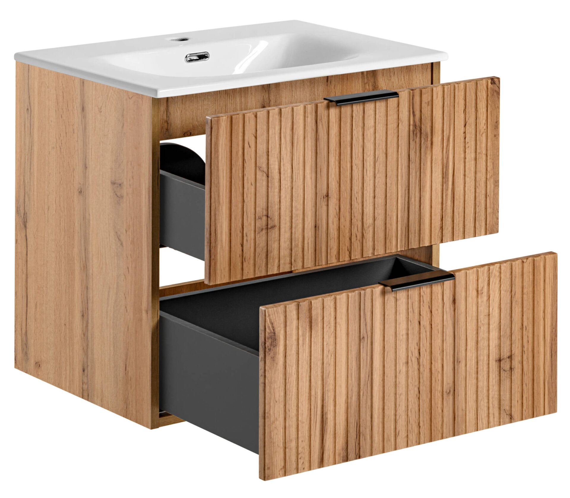 Į krepšelį Palyginti Vonios kambario baldų komplektai COMAD Praustuvo spintelės baldų komplektas 60 cm, 2 stalčiai, Talia Casella, juodas matinis 197.86€