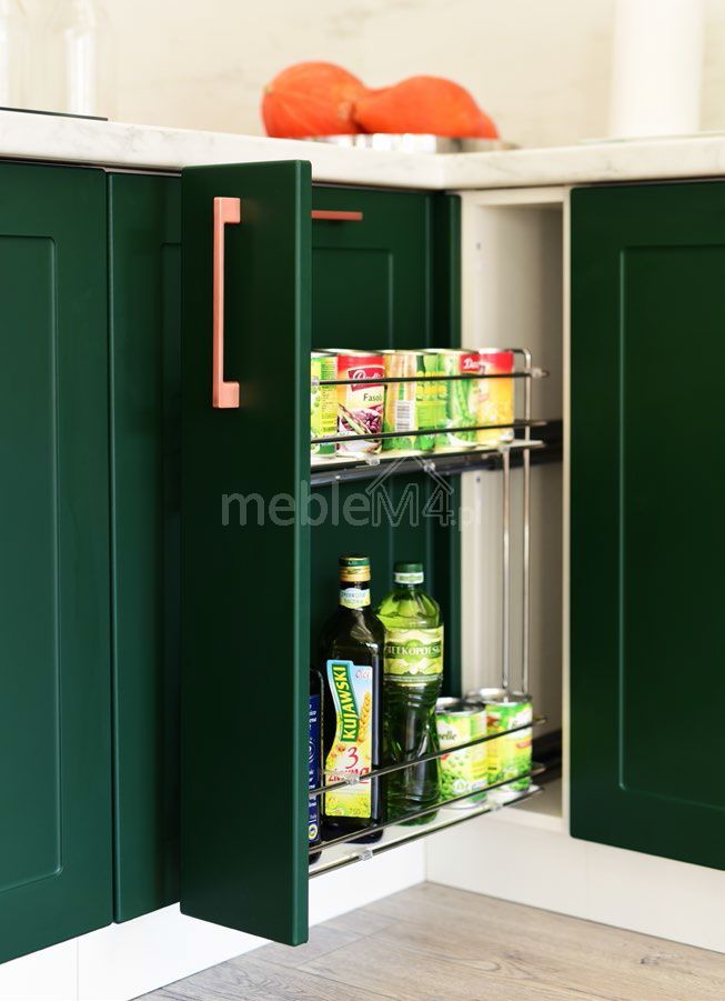 Adele 15 cm D15 krovininė apatinė spintelė + švelniai uždaromas krepšelis be stalviršio – ši spintelė priklauso „Trend“ linijos virtuvės baldų komplektui, pasižyminčiam šiomis specifikacijomis: