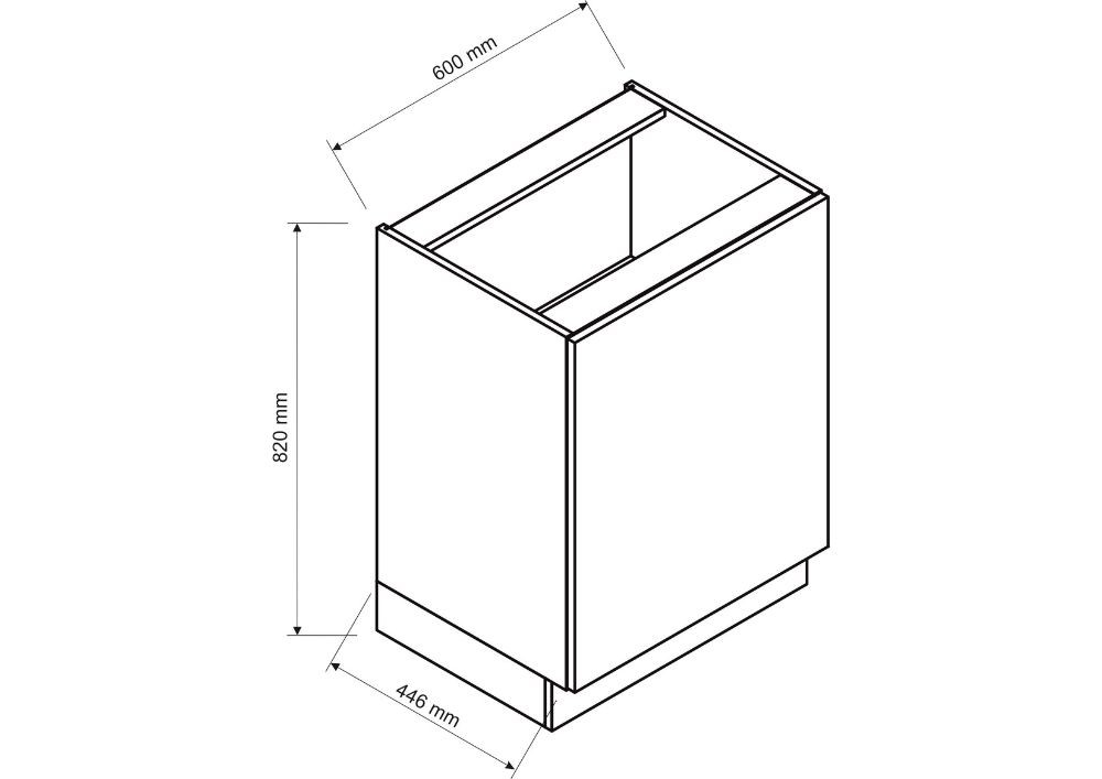 be uždarymo mechanizmo | Matmenys: plotis [cm]>60 aukštis be stalviršio [cm]>82 gylis be stalviršio [cm]>44,6