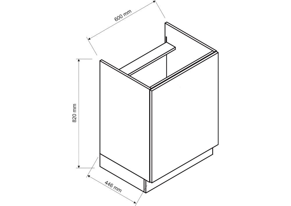 be uždarymo mechanizmo | Matmenys: plotis [cm]>60 aukštis be stalviršio [cm]>82 gylis be stalviršio [cm]>44,6