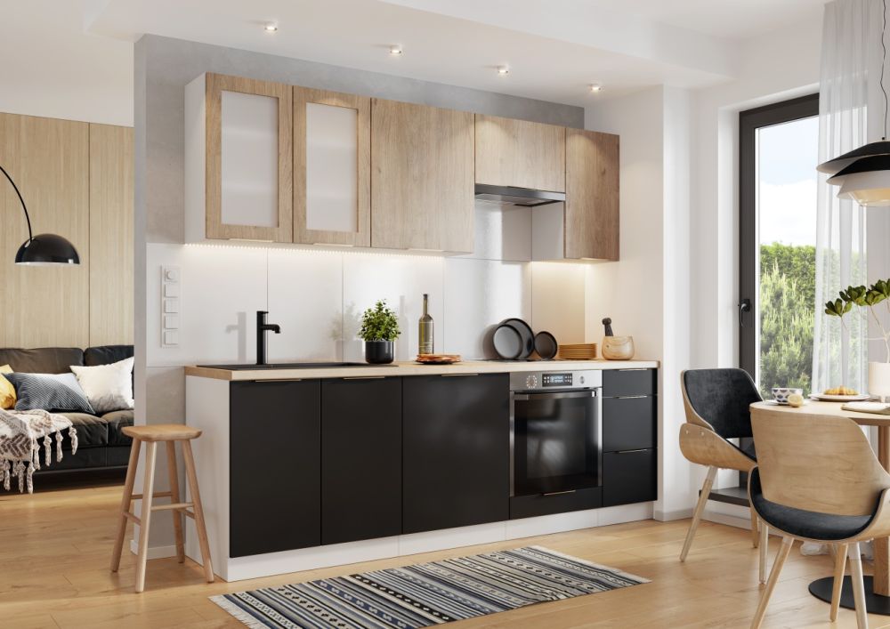 Virtuvės specifikacijos – balta matinė, juoda matinė, kavos spalvos matinė, Londono ąžuolas | Virtuvės stilius – modernus/loftas | Fasado tipas: Laminuota plokštė / MDF / Lakuota MDF plokštė | Matmenys: gylis be stalviršio [cm]>52,4; gylis su stalviršiu [cm]>60; plotis [cm]>60; aukštis be stalviršio [cm]>82