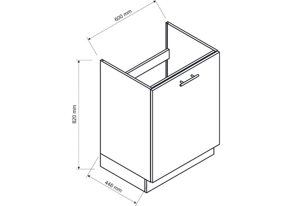 Apatinė spintelė 60 cm, Natalia D60 ZL kriauklė, apatinė/kairinė – 1 fasadas