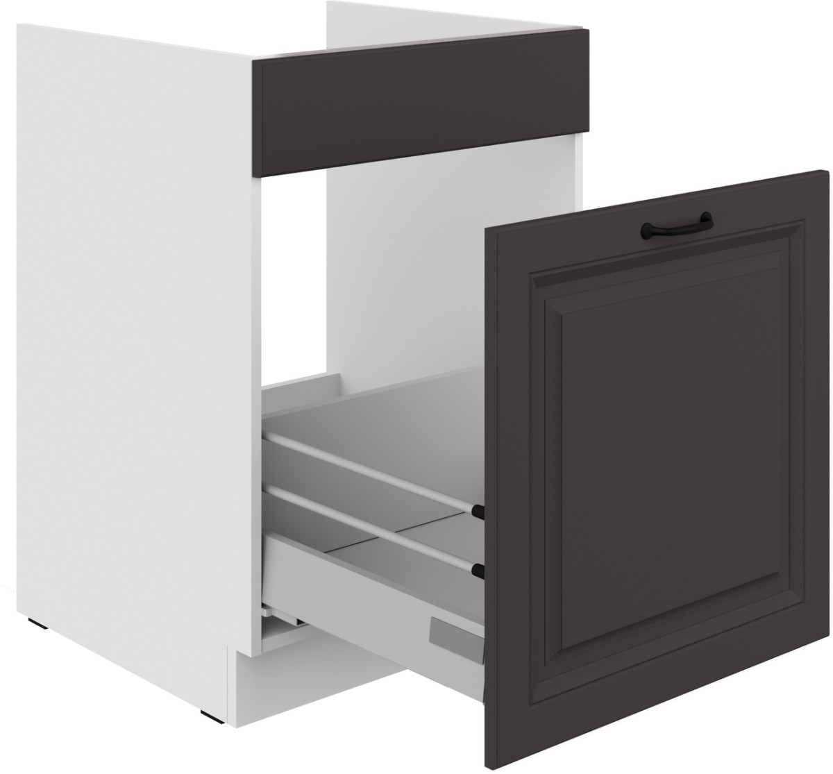 60 cm apatinė spintelė su Stillo 60 ZL 1S BB PREMIUM BOX kriauklės stalčiumi – galite rinktis iš 1 x 15 l talpos konteinerių spintelei arba 2 x 7 l talpos konteinerių.