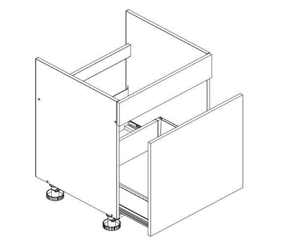 Priekinės dalys pagamintos iš 19 mm storio MDF plokštės, padengtos PVC folija, galima įsigyti matinės apdailos.
