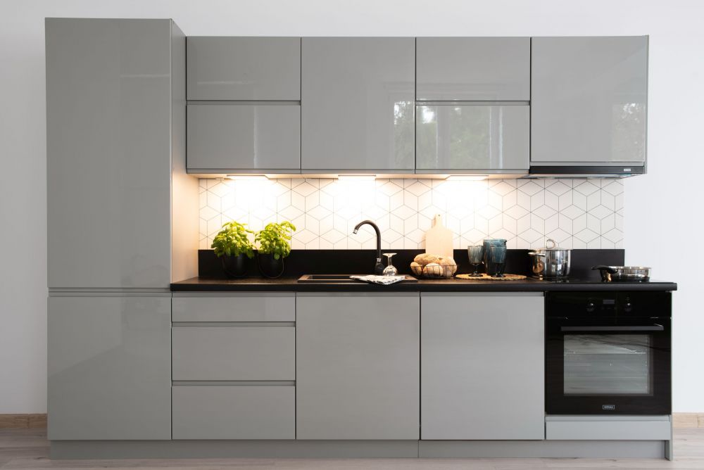 Virtuvės specifikacija – balta matinė, balta blizgi, nude blizgi, žalia matinė, sidabro blizgi | Virtuvės stilius – modernus | Fasado tipas: Laminuota plokštė / MDF / MDF lakas | Matmenys: gylis be stalviršio [cm]>52,4; gylis su stalviršiu [cm]>60; plotis [cm]>80; aukštis be stalviršio [cm]>82