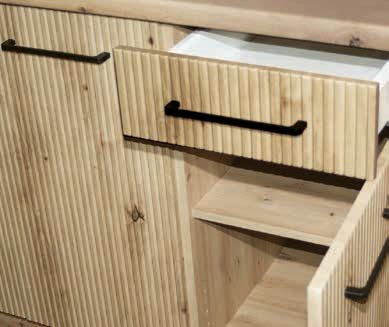 Priekinės dalys – grioveliai apačioje – „Artisan“, viršutinė; blizgi balta, blizgi latte ir matinė pilka korpuso spalvos – trys spalvos: Sonoma ąžuolas, artisan ąžuolas arba Andersen pušis.