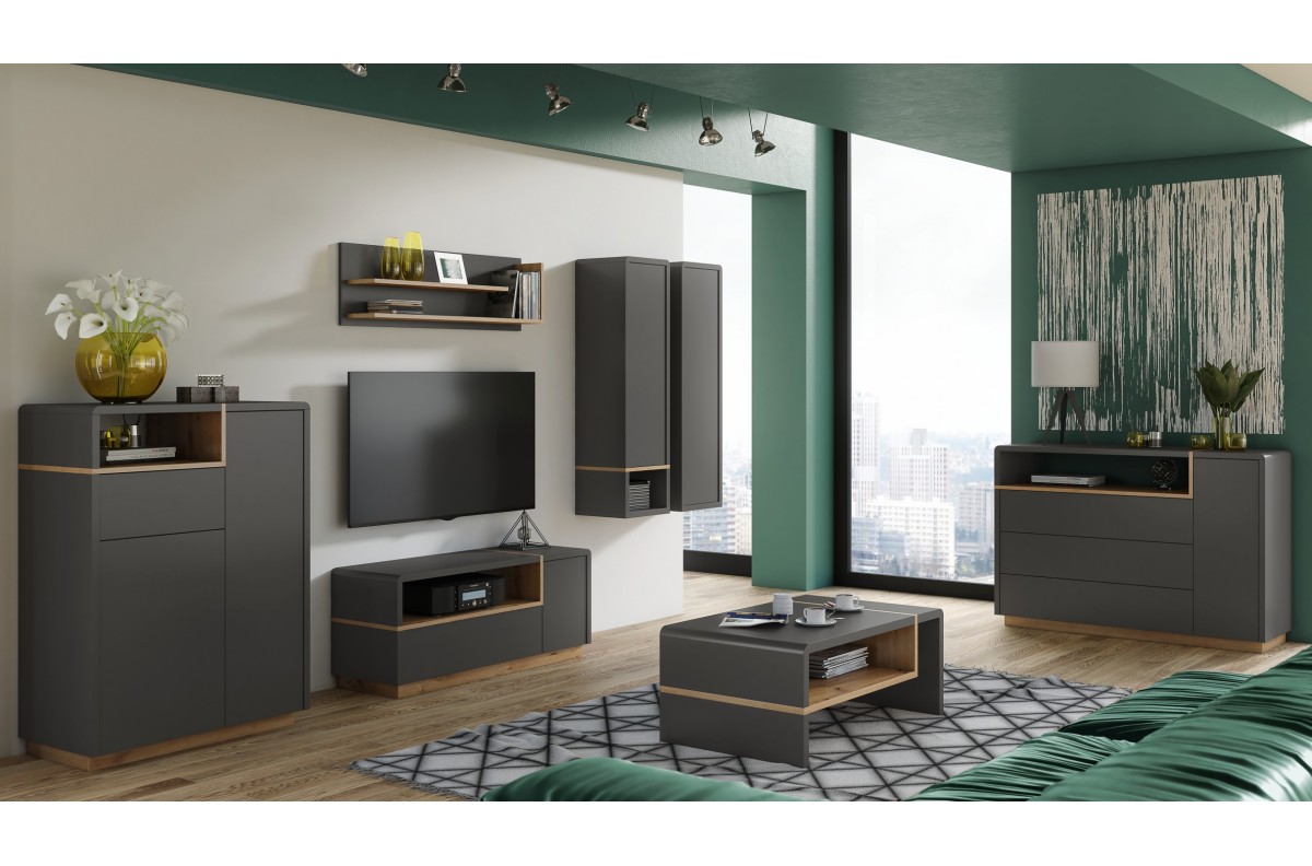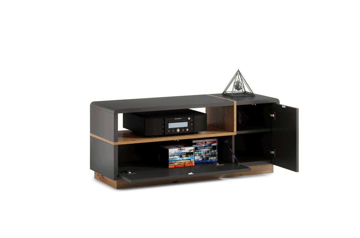 FOLK RTV-120 antracito (tamsiai pilkos) / artisan ąžuolo spintelė – MODERNI SVETAINEI