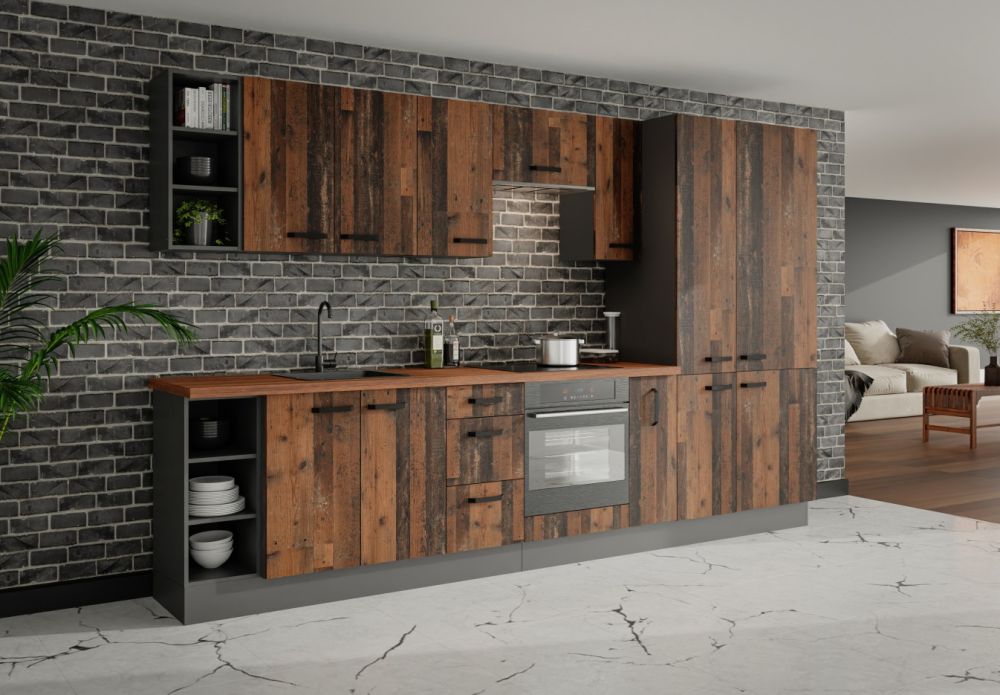 „Old Style Kitchen“ – tai labai praktiškų ir gražių baldų komplektas. Sistemą sudaro dešimtys spintelių – vintažinio stiliaus virtuvės baldai. Spintelių fasadai lygūs. Platus stalviršių pasirinkimas. Tvirtos rankenos suteikia baldams charakterio ir palengvina prieigą prie viduje laikomų produktų. Jos puikiai papildo visą komplektą.