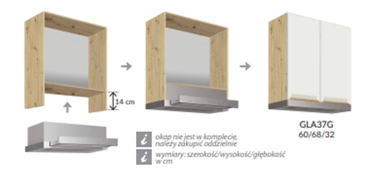 60 cm „Glamour GLA-37G“ spintelė su gaubtu – spintelė be gaubto.