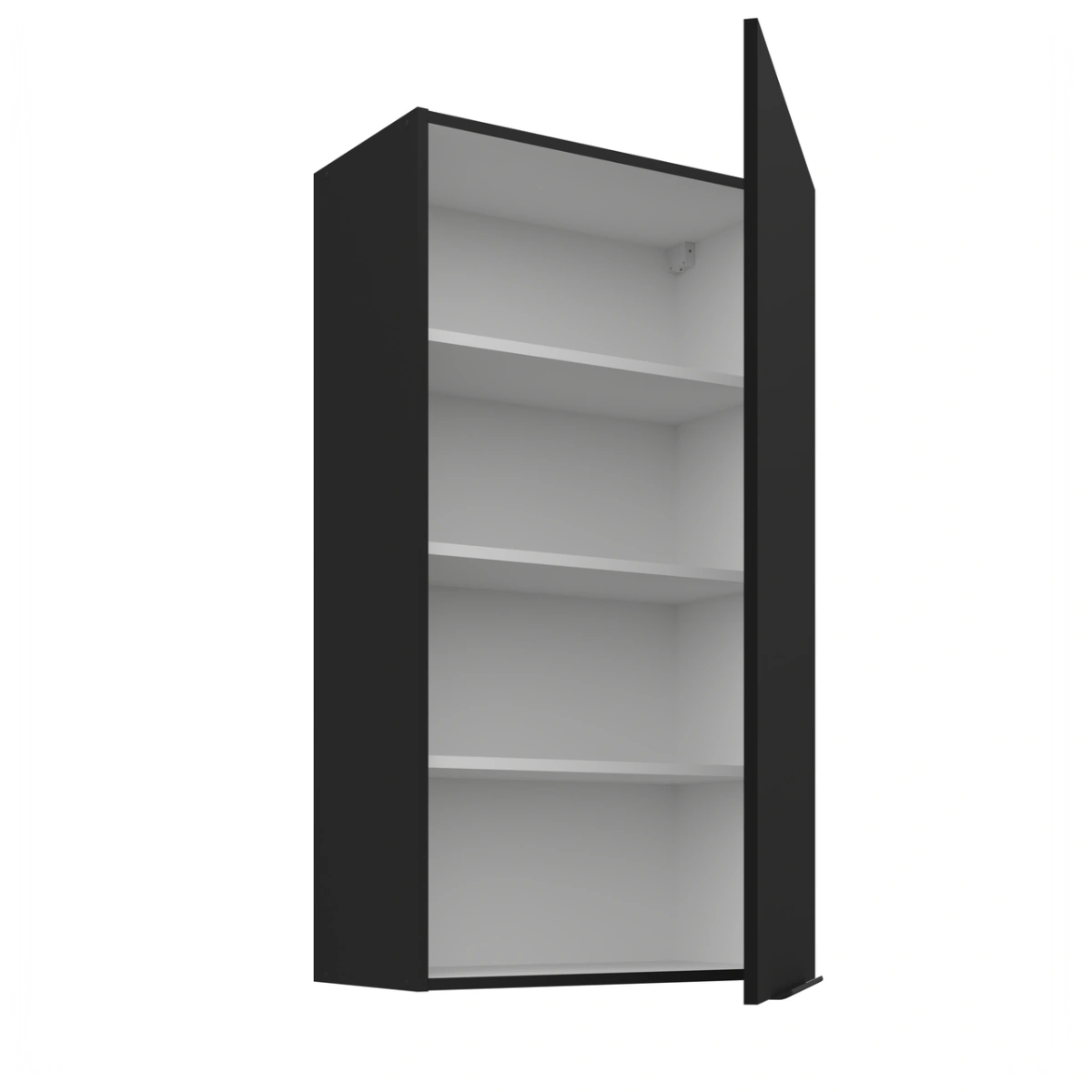 60 cm Siena viršutinė spintelė, matinės juodos spalvos 60 G-108 1F – lentyna viduryje, universali fasado dalis.