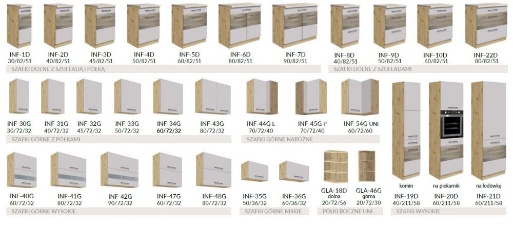 „Infinity Kitchen“ – tai modernus ir ergonomiškas virtuvės baldų komplektas, kurį sudaro: