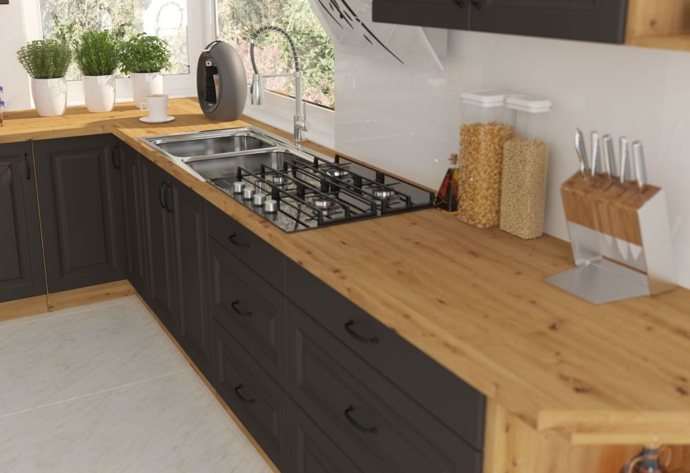 2,8 cm arba 3,8 cm storio stalviršiai, pagaminti naudojant pokalimo technologiją, su ergonomiškai užapvalinta priekine dalimi (nebūtina)
