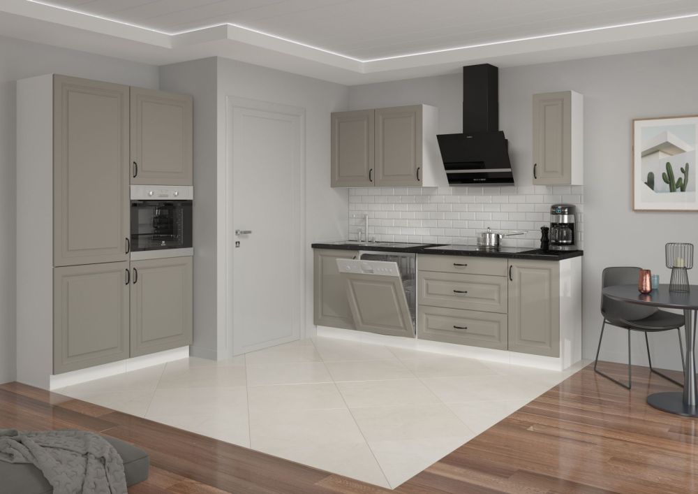 Virtuvės spalva: matinė pilka su smėlio spalvos atspalviu